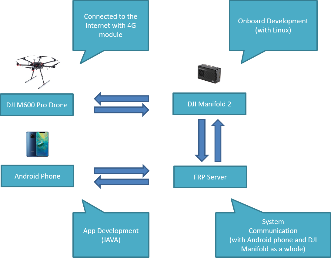 Huawei 4G module is connected to a real DJI M600 Pro drone. We control the drone from our App through the network we built, to verify the real-time control.