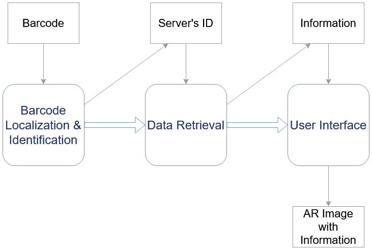 The project is divided into 3 major parts in manufacturing: Flowgate environment, Android App and iOS App. The backend server Flowgate is developed by VMware, and we install and configure it. For the 2 platforms of the front-end App, we use Java as the programming language for the Andriod App, and swift for the iOS App. To build the AR interface, we use Google’s Sceneform 1.17.1 SDK based on ARCore for Andriod, and Apple’s ARKit for iOS. In addition, ML Kit is used for barcode detecting and decoding in Andriod App. The Apps will be finally shown on Andriod and iOS mobile phones.