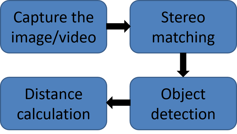 We generate our concept through a flow chart of what we are going to do to calculate the distance. Our hardware part are restricted by our sponsor, the total price of two CMOS cameras should be less then 500RMB. On the Fig. 2 the stereo system of two HIKVISION DS-U12i cameras with resolution 1920*1080.