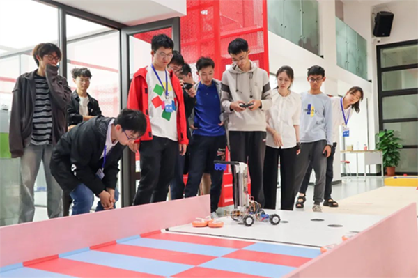 学生在中心参与新生机械赛调试
