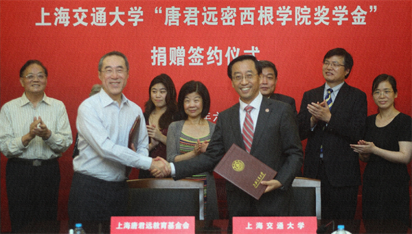 唐翔千先生深知国将兴,必贵师而重傅。2016年,唐翔千长子唐英年先生代表唐氏家族和上海唐君远教育基金会与上海交通大学签署协议设立“唐君远讲席教授基金”,支持上海交通大学高层次人才的引进与培养。