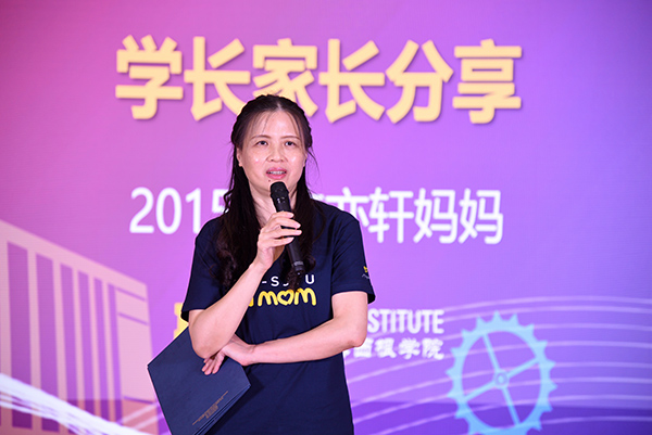 2015级学长家长金鑫(网名)从放心放手、倾听鼓励和陪伴成长三个方面分享了自己的感受。她表示,家长应给予孩子独立成长的机会,锻炼孩子,在孩子压力大时,多一些鼓励、建议和方法,调整后再出发。当孩子逐渐走向自己的人生舞台,家长要做的就是陪伴,让孩子亲自领悟生活的痛苦与欢乐,今后才能走得更高更远。