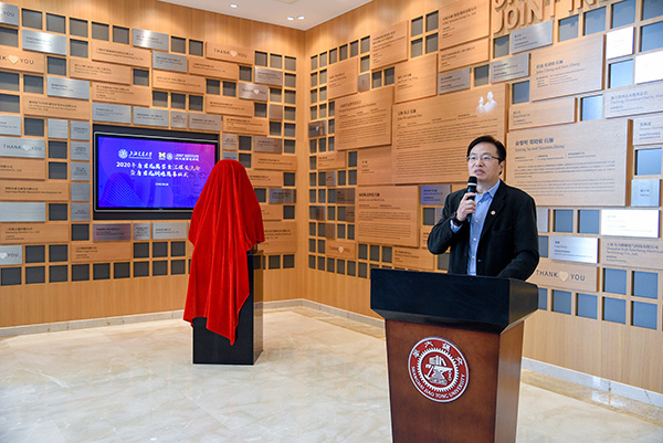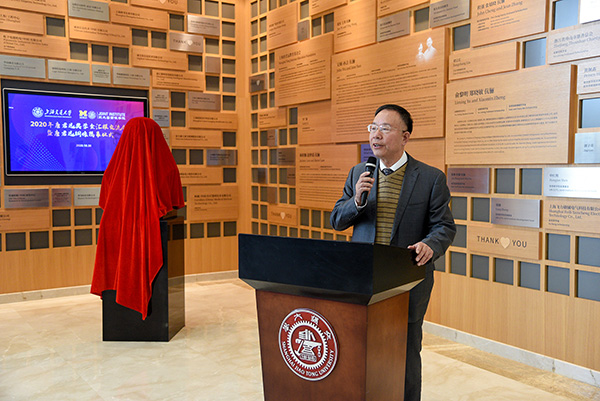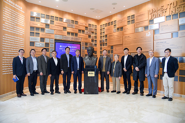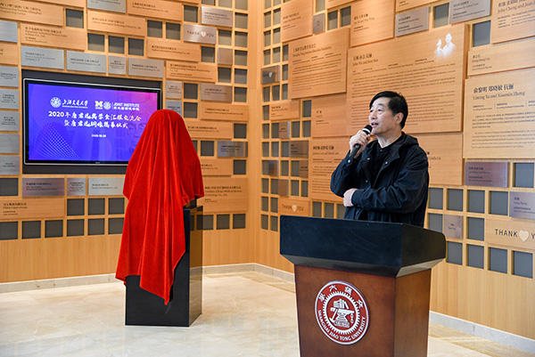 10月30日上午,2020年唐君远密西根学院奖学金汇报交流会暨铜像揭幕仪式在上海交通大学密西根学院龙宾楼举行。上海唐君远教育基金会秘书长金同康、副秘书长唐新璎、办公室主任王家荣,上海大学艺术研究院执行院长、教授、唐君远铜像设计者张海平,上海交通大学副校长张安胜,上海交通大学发展联络处处长助理、项目部主任于洋,密西根学院院长黄佩森、党委书记兼科研副院长杨明、学术事务副院长陈谦斌、研究生教育副院长孔令逊、本科生教育副院长郑刚、党委副书记兼行政总监杨艳春、发展与合作办公室主任许青等学院相关教师代表出席揭幕仪式。揭幕仪式由黄佩森主持。