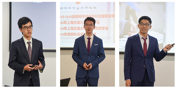 揭幕仪式前,2020年唐君远密西根学院奖学金汇报交流会在龙宾楼四楼会议室举行。会上,密西根学院相关负责领导向上海唐君远教育基金会方汇报了有关唐君远讲席教授、2020年唐君远奖学金评审、唐君远学生创新中心建设等情况。陈谦斌在汇报中表示,作为第一任唐君远讲席教授,他深感责任重大,身体力行为学院的管理团队和教育体系的完善做出贡献。杨艳春代表唐君远奖学金评审委员会汇报了本年度奖学金的评审情况,2020年唐君远奖学金评审从今年6月启动,收到22份申请,经过两轮评审,朱辰澍、张行健2位同学获奖,任启涵等8位同学获得提名奖,张圣安、马嘉祥2位同学获得续评。唐君远奖学金获奖学生代表随后依次分享了自己在学习、科研、实践活动等方面的收获和感悟。