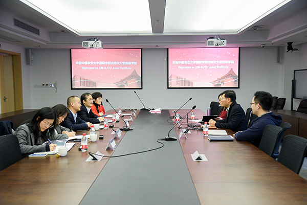 12月17日,中国农业大学国际学院李道亮院长和陈明海书记一行5人赴上海交通大学密西根学院进行考察调研。交大密西根学院党委书记兼科研副院长杨明、助理教授乔恒、行政办公室主管宋立群与来宾座谈交流。