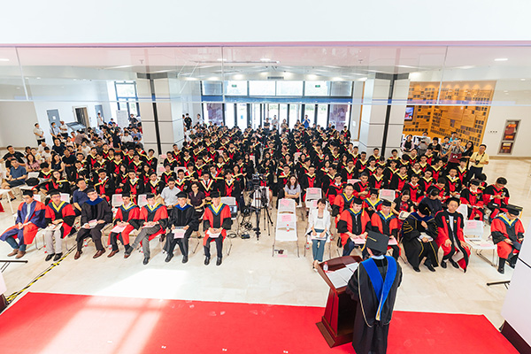 8月7日上午,上海交通大学密西根学院2020届毕业典礼暨学位授予仪式在龙宾楼一楼隆重举行。密西根大学副教务长Valeria Bertacco、密西根学院院长黄佩森、党委书记兼科研副院长杨明、学术事务副院长陈谦斌、研究生教育副院长孔令逊、本科生教育副院长郑刚、党委副书记兼行政总监杨艳春等领导和特邀嘉宾出席了典礼。密西根学院全体毕业生、部分教职工和众多学生家长在线上线下共同见证了激动人心的毕业时刻。
