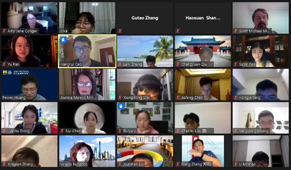 7月7日,交大密西根学院联合密西根大学在线上举办院长见面会活动,为学院双学位项目及全球学位通项目学生详细介绍了疫情影响下2020年秋季学期的安排以及应对措施。由于新冠疫情的影响,密西根学院今年全面暂停了国际学生的接收,而学生派出也在世界安全形势的不断变化中曲折而行。在整个疫情期间,密西根学院和密西根大学一直保持着紧密的联系,每两周一次的例行APG会议从未间断。在如何降低疫情对学生的影响并妥善其学业安排上,双方进行了多次的交流讨论,确保学生在不能赴美的情况下,依然可以获得良好的学习体验及专业的学术支持。