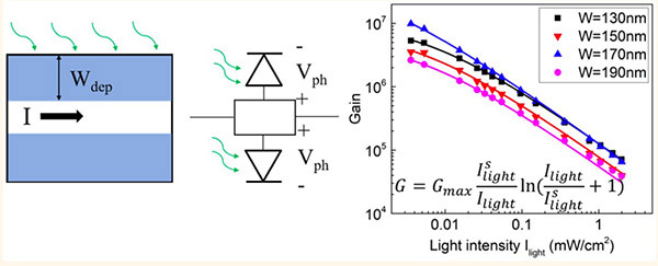 3月,上海交通大学密西根学院但亚平教授课题组在纳米科学领域全球顶级学术期刊《ACS Nano》(杂志的影响因子为13.903)上发表题为《Explicit Gain Equations for Single Crystalline Photoconductors》(单晶光电导器件显性增益公式)的最新研究成果。论文揭示光电导器件的巨大光增益来自器件导电沟道的宽度调制效应,并进一步推导出具有一般通用性的显性光电导增益公式。该公式可定量预测并完美拟合实验数据,研究成果将颠覆经典光电导增益理论。