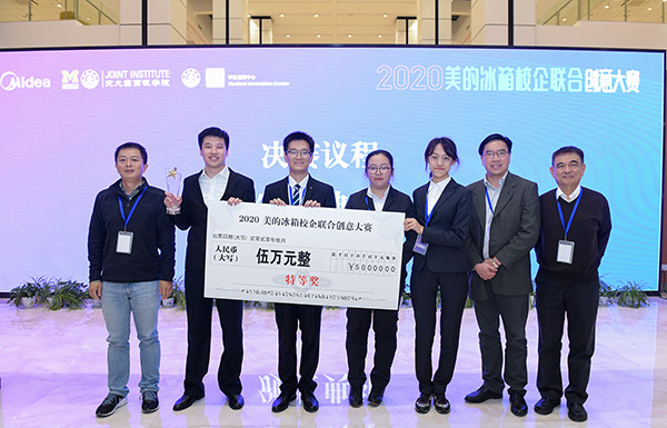 1月,由上海交通大学密西根学院本科生组成的团队在“以创新·致未来”美的开放式创新大赛2019上海站决赛中展示 “食材管理冰箱”的创新产品理念,惊艳四座,一举夺得一等奖。此次大赛吸引了上海7所高校的100多位同学组成的20多个团队,经过初赛、复赛的层层选拔,6支队伍闯进决赛。由密院本科生王佳祺、吴争、徐晟元、刘学深、周展鹏、王镇霆组成的参赛队伍最终斩获此次历时4个多月比赛的一等奖。
