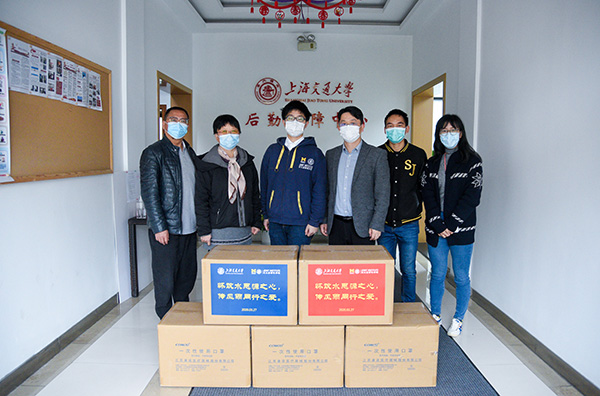 3月27日,上海交通大学密西根学院大二学生邓逸尘在学院党委副书记杨艳春的陪同下来到学校后勤保障中心,把这份贴着“怀饮水思源之心,传风雨同行之爱”字样的礼物交到中心党委副书记兼纪委书记李梅和主任助理兼工会主席沈芳良手中。寒假期间,邓逸尘和几位同学在德国柏林参与学院组织的柏林工业大学冬季游学项目。当时正值国内新冠疫情形势严峻之时,各地防控物资出现告急、紧缺的情形 。1月27日,在得知学校校医院防疫物资短缺的情况之后,邓逸尘和同学商议,决定立即以德国冬季项目的名义向全院同学发出倡议书,开展线上捐赠活动。倡议书发出后不久,就得到了学院在法国、匈牙利、俄罗斯、日本、美国等国参与冬季项目的同学们的热烈响应。经过历时2个月的努力,终于采购到了1万只口罩并把这些口罩运送到了学校的手中。