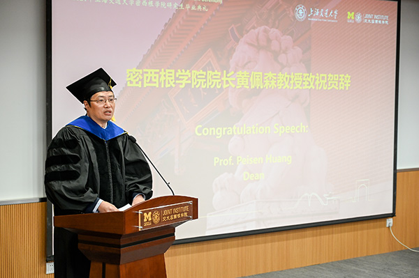 3月26日,上海交通大学密西根学院2021年研究生毕业典礼在学院龙宾楼中集报告厅隆重举行。加拿大工程院院士、加拿大西安大略大学工业4.0研发中心主任、联合国工业发展组织中加创新中心主任杨军,密西根学院院长黄佩森、学术事务副院长陈谦斌、导师代表及2021届全体硕士、博士毕业生出席典礼。毕业典礼由陈谦斌主持。