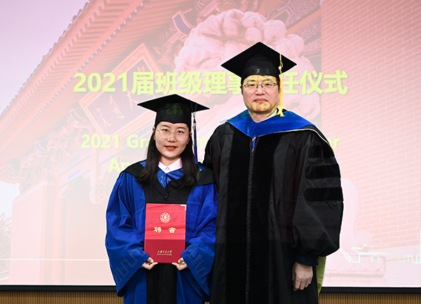 仪式结束后还举行了2021届班级理事聘任仪式,聘任硕士毕业生张晓飞为2021届班级理事。