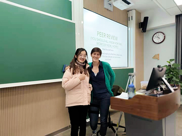 王庄芸与其担任助教课上的教授合影