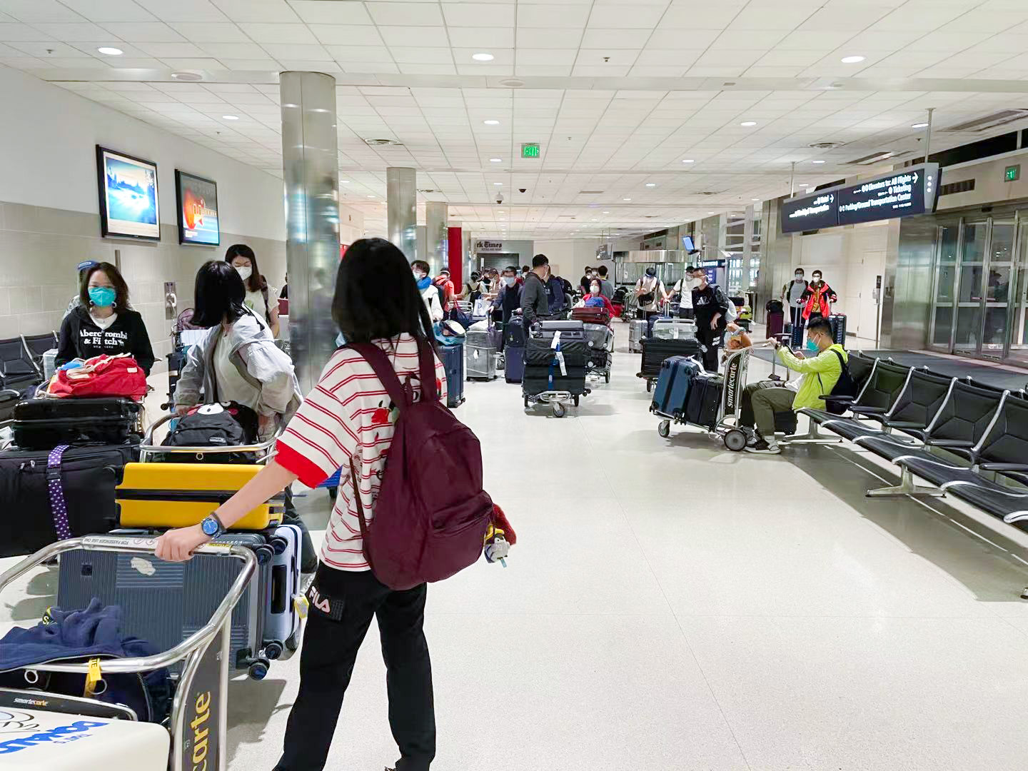 邵学长从八月中旬开始就和我们几个比较早航班的同学沟通了接机方案。很多备案也在我们到达后一起做了测试,包括能否用中国的手机号码打Uber等问题,以及机场到达在行李转盘的什么位置碰头等细节。