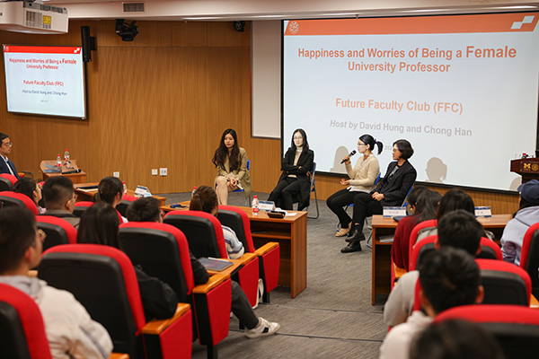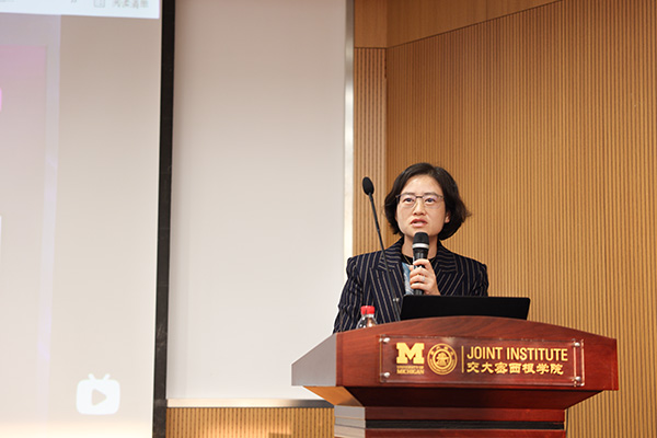 10月27日下午,上海交通大学密西根学院未来教授协会讲坛“高校青年女教师的喜乐与挑战”讲座在学院龙宾楼300号中集报告厅举行。本期讲座聚焦高校女教师在个人成长和职业发展中的职业优势和和挑战,邀请到学院长聘教轨女教师代表、博士生导师朱虹、龙泳、陈倩栎和贺玉莲作为嘉宾分享各自成长经历、畅谈人生智慧,并就学生们的提问展开了热烈的讨论与交流。密西根学院研究生教育副院长孔令逊出席活动,研究生办公室主管齐航、研究生教务老师以及来自交大各学院共90余位师生现场参加。讲座由学院研究生教育委员会委员、未来教授协会共同发起人韩充主持。