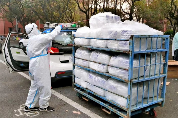 学院留校教师组成送餐队伍,负责同学们的一日三餐