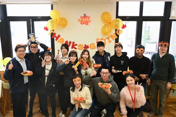 Pauline Wang(后排左四)参与学院举办的感恩节活动