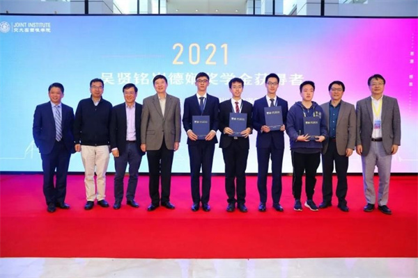李泽玺(左五)接受吴贤铭崔德娴奖学金颁奖