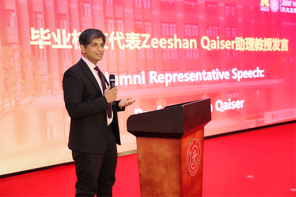 校友代表、同济大学助理教授Zeeshan Qaiser回忆起自己在密院学习和工作的近8年时光,感叹万千。发言中他强调了勤奋和毅力的重要性,他相信经历过密院扎实训练的同学们会在艰难的现实环境中脱颖而出。他也希望同学们饮水思源,始终保持与学院的联系,并鼓励同学们忠于自己的价值观,勇于迎接挑战,用激情为世界带来改变。