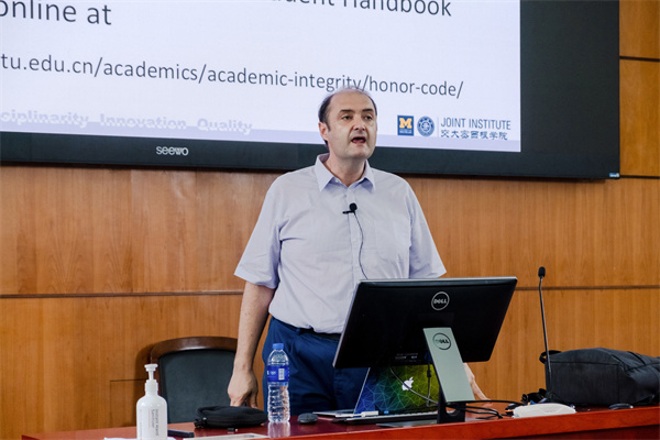 5月26日,上海交通大学密西根学院“诚信教育”主题团日活动在上院100号顺利举行。学院纪律委员会主席Horst Hohberger教授担任本次活动主讲人,活动由思政教师李秋键主持。