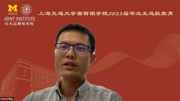 2015届本科校友、即将入职密西根大学担任教职的丁砚然分享了自己在密院四年的经历和体会,他寄语同学们要坚持锻炼身体,保持良好的阅读习惯,遇到困难保持坚忍不拔的精神勇往直前,希望同学们能够在自己选择的赛道上享受生活和学习的过程,在热爱的领域发光发热。