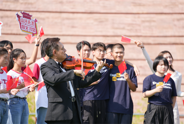 陈谦斌、申岩峰与旅意男高音歌唱家、上海市阳光科普公益大使张帆涛先生,女高音歌唱家徐玉萍老师一道,共同演绎《科学家之歌》《如愿》等经典作品。小提琴的悠扬旋律与美妙歌声交相辉映,共同展现科学与艺术的完美融合。密院师生还与嘉宾和科技工作者代表们共唱《我和我的祖国》,向建国75周年献上诚挚祝福。