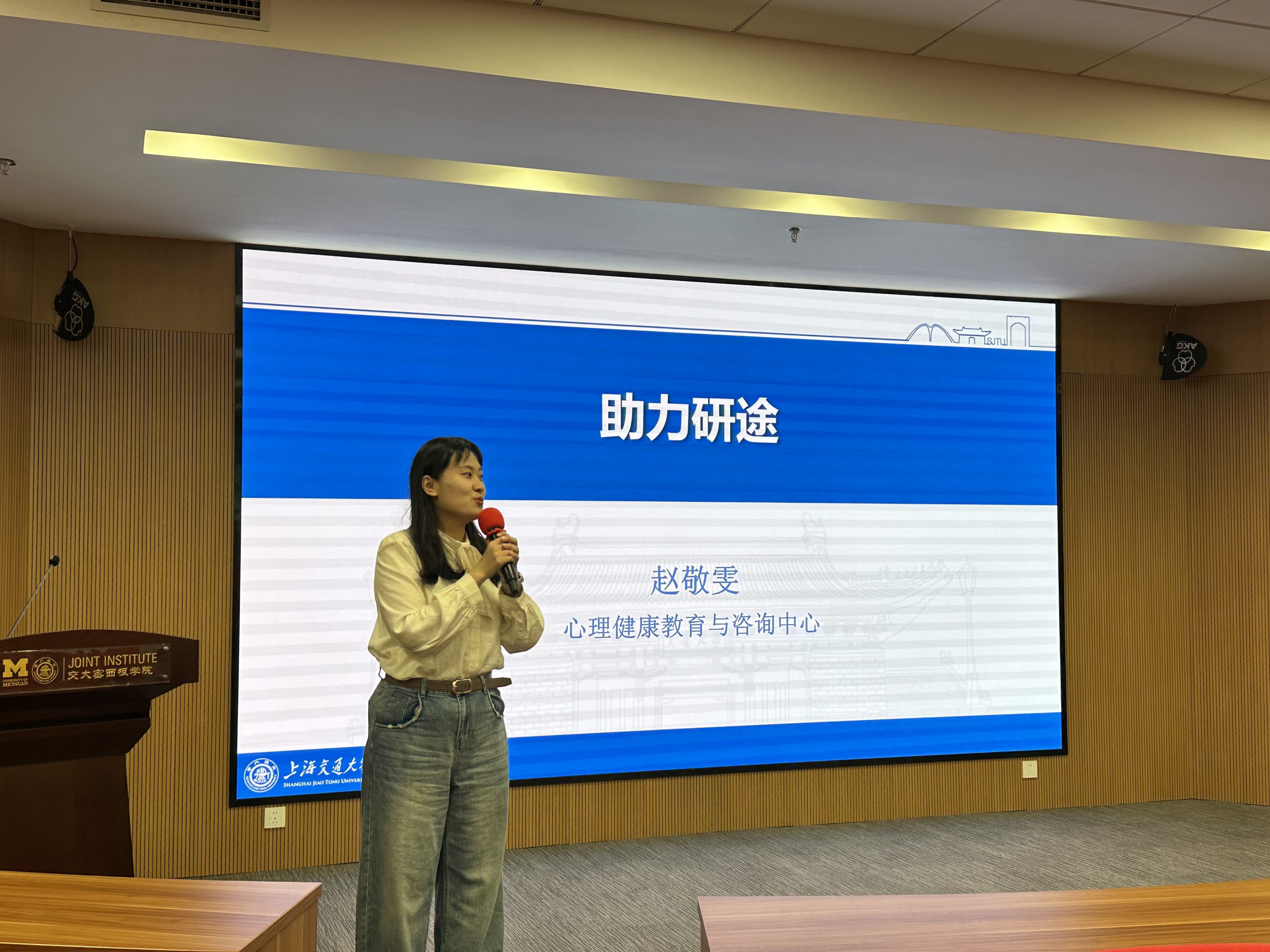 10月30日下午,面向交大密西根学院硕博研究生群体,以“助力研途”为主题的心理辅导讲座在龙宾楼300号报告厅顺利举行,校心理咨询中心专职咨询师赵敬雯受邀前来和大家进行了交流。