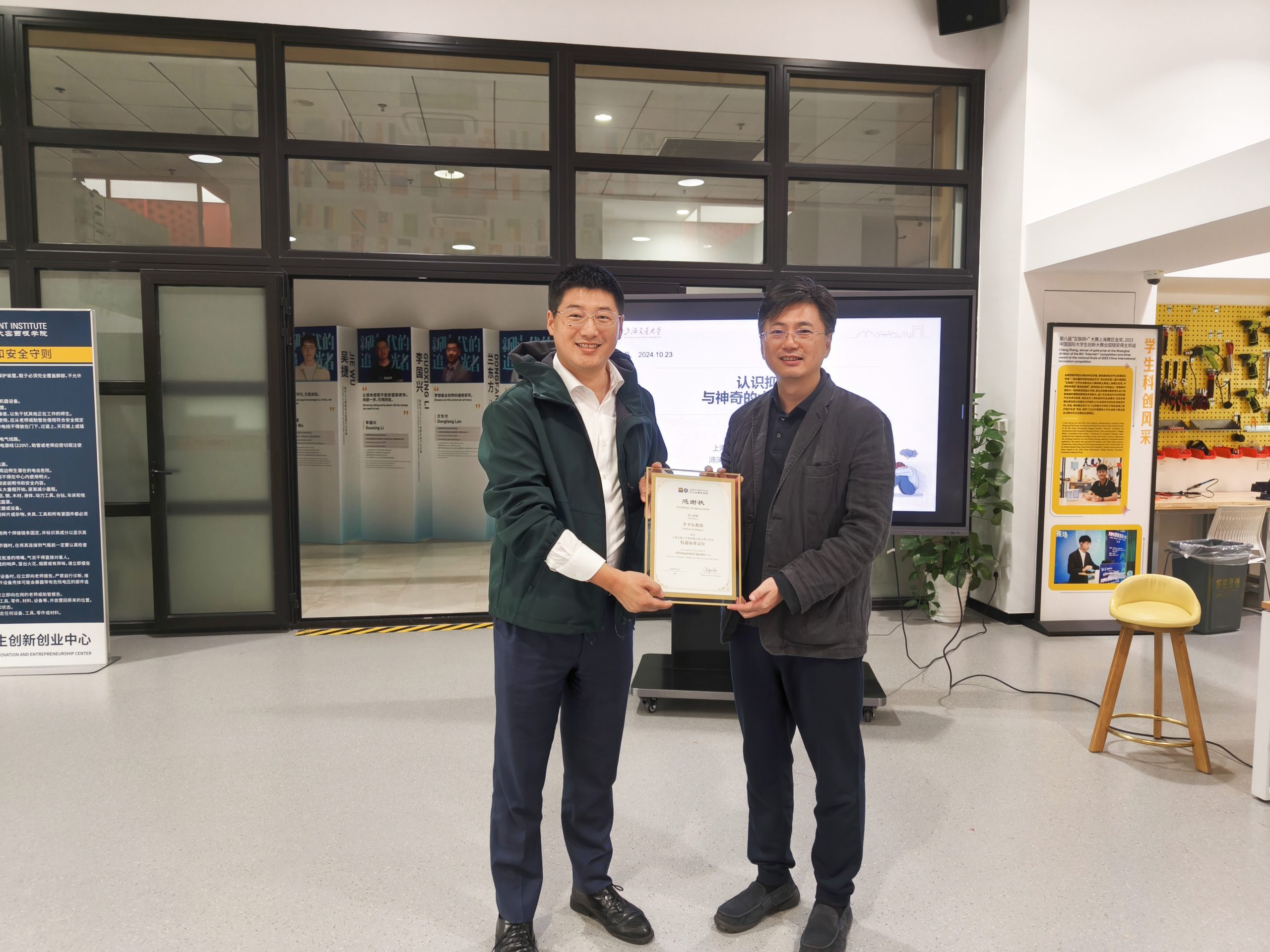 活动伊始,王冲代表学院向李卫东颁发了感谢状,以感谢他在推动学科交叉发展方面所做出的杰出贡献。同时,王冲对心语工作坊的活动开展给予了高度评价,并鼓励同学们要拓宽视野,积极探索学科交叉的更多可能性。