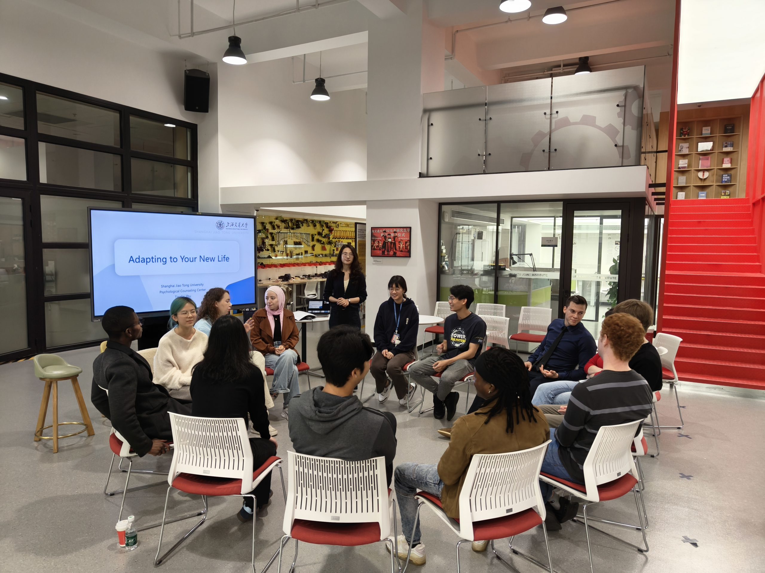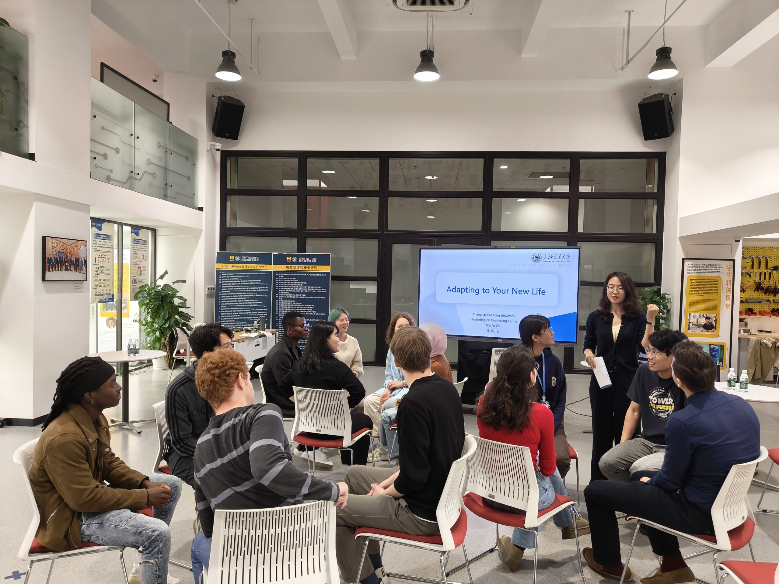 11月15日上午,面向交大密西根学院硕博研究生留学生群体,以主题为“适应崭新生活”的心理团体辅导在龙宾楼唐君远学生创新创业中心顺利举行,校心理咨询中心专职咨询师朱婷飞受邀前来与留学生进行了团辅活动。