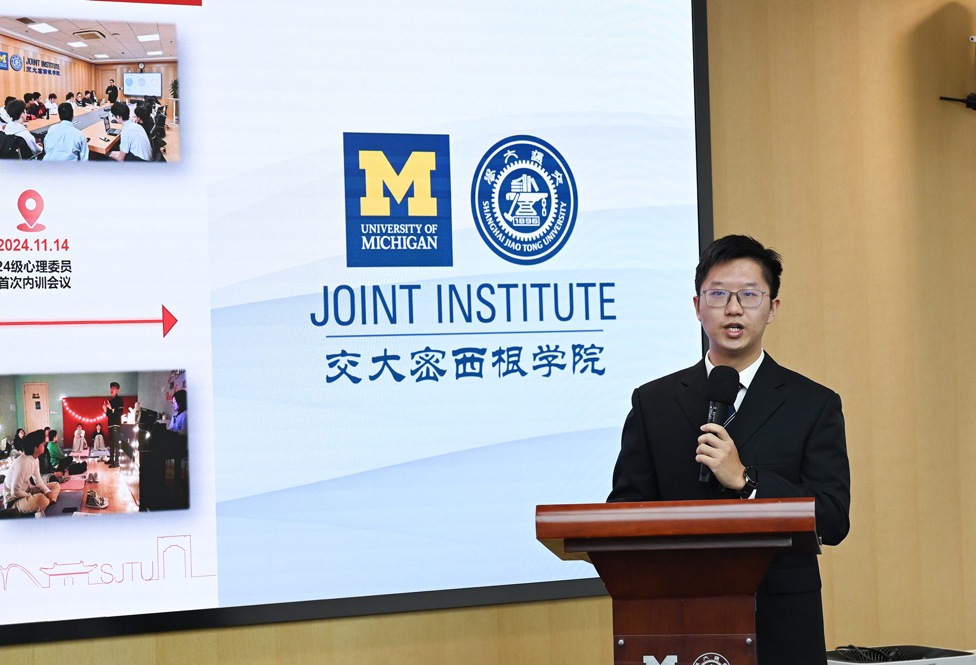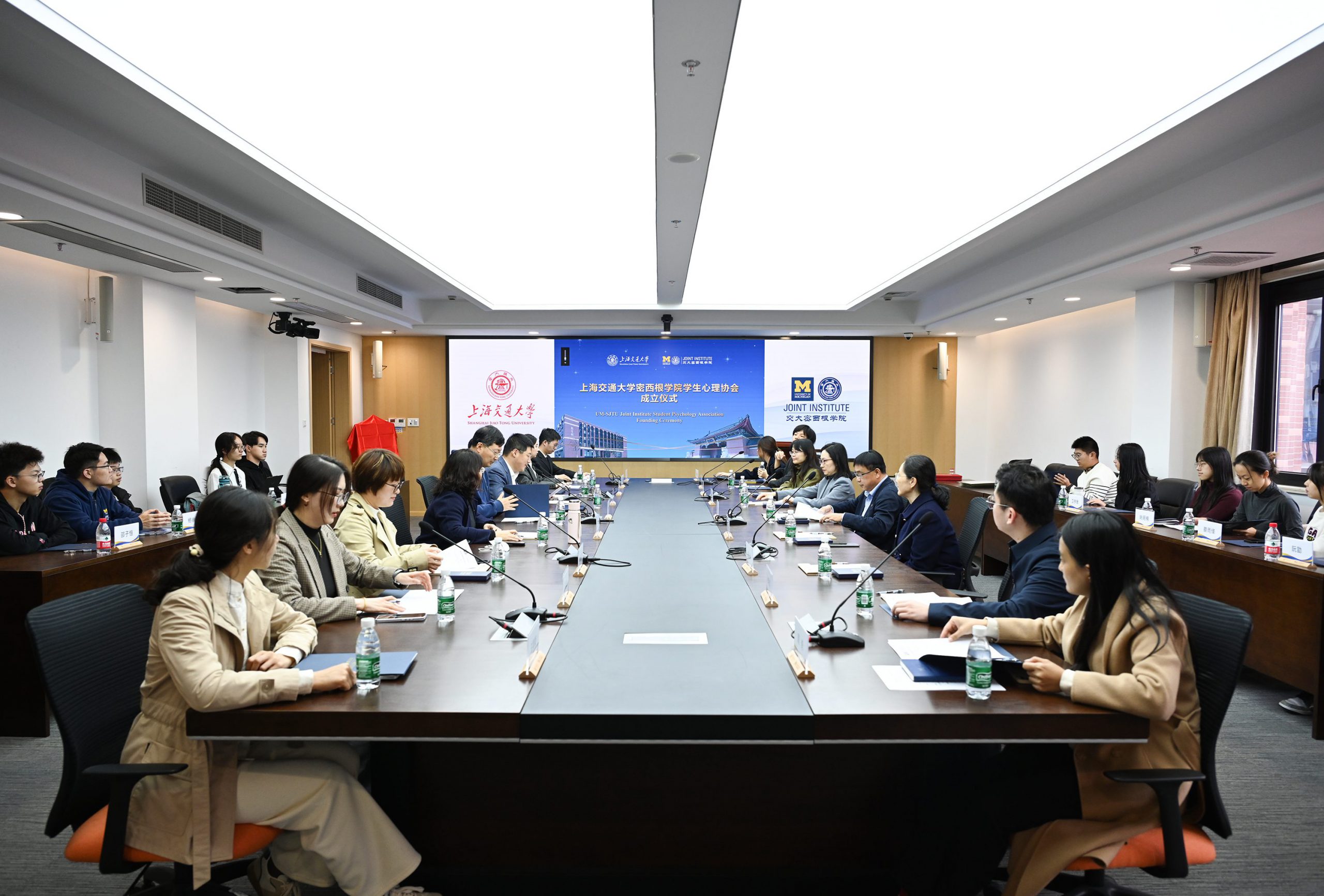 12月4日,上海交通大学密西根学院学生心理协会成立仪式在密西根学院龙宾楼454会议室举行。上海交通大学党委副书记周承,宁夏医科大学总医院心理卫生中心主任方建群,上海交通大学心理学院党总支书记王喜芳,校心理咨询中心主任张洪英,上海圣华紫竹高级中学人文社部主管、心理学教师刘燕吉,密西根学院党委书记杨明,党委副书记王冲,助理教授焦恩临,学生工作办公室主任吴琦及学院师生代表出席了仪式。仪式由王冲主持。