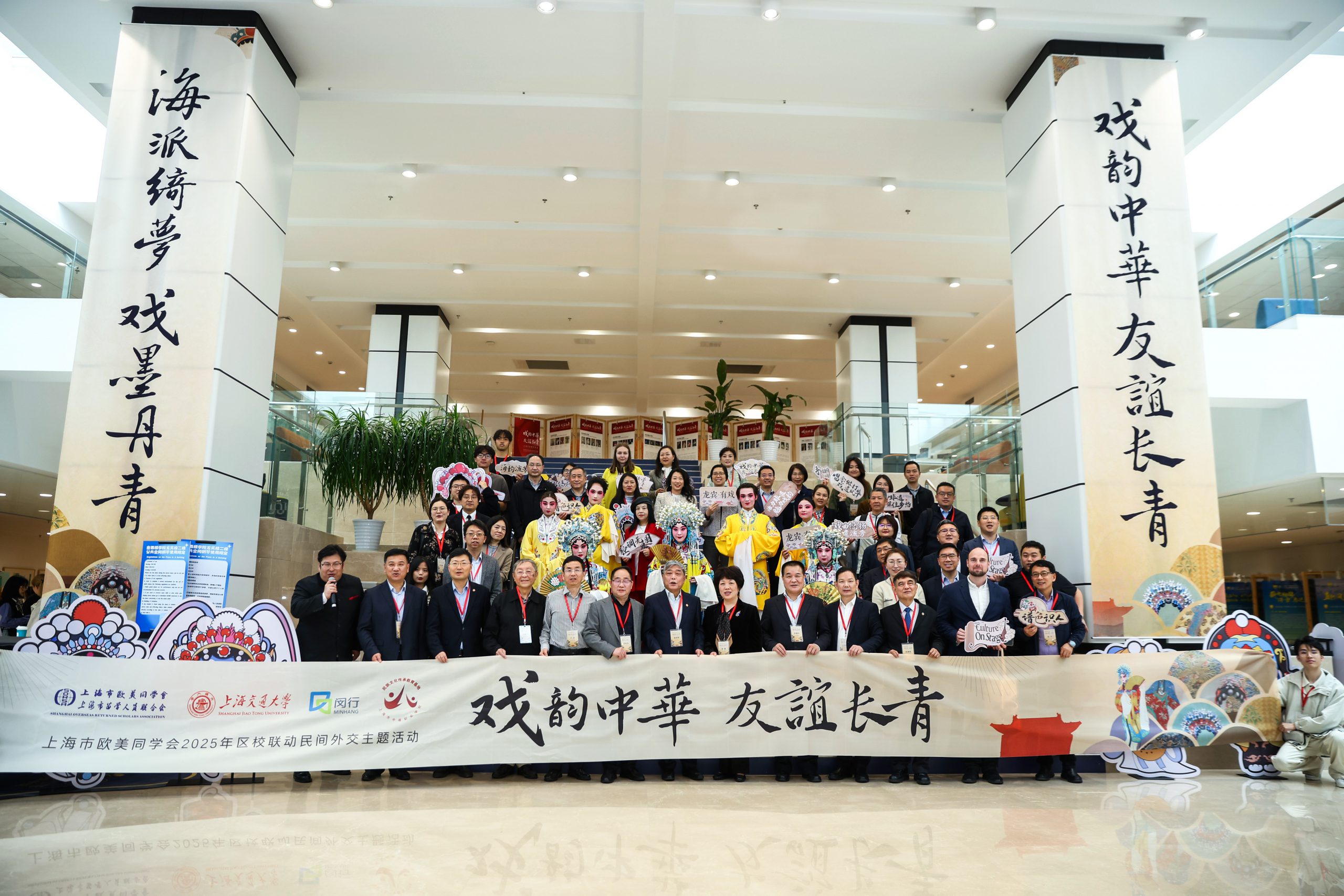 3月27日,正值世界戏剧日之际,“戏韵中华,友谊长青”上海市欧美同学会2025年区校联动民间外交主题活动在上海交通大学密西根学院龙宾楼盛大举行。本次活动由上海市欧美同学会主办,上海市欧美同学会闵行分会、上海市欧美同学会上海交通大学分会、上海交通大学密西根学院等单位承办。活动以海派戏曲为核心,融合非遗技艺体验与当代文化传承,吸引了百余名中外师生、校友及文化爱好者参与,共绘中华文化与国际交流的融合画卷。