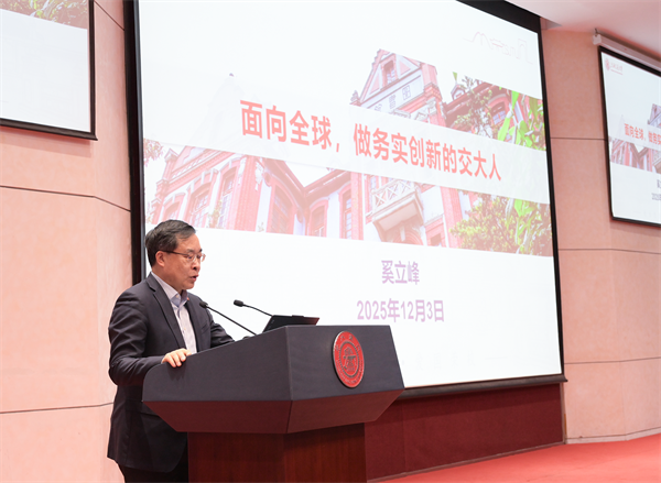 报告中,奚立峰传达了党的二十届四中全会精神,梳理了交大百余年国际化办学的探索历程。他指出,上海交通大学自诞生时起,始终与国家需求同频共振,培养了钱学森、吴文俊等大批具有国际视野的杰出人才。近年来,学校坚持“综合性、创新型、国际化”办学方针,以开放促改革促发展,国际化办学水平稳步提升。