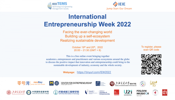 Co-organizers of IEW2022 include Centre for Entrepreneurship (CFE) of JI, neoBay Global Innovation and Entrepreneurship Community, Shanghai Minhang Overseas Talents Entrepreneurship Park, International Ecosystem for Innovation and Entrepreneurship (IEIE), and Technology and Engineering Management Society attached to Institute of Electrical and Electronics Engineers (IEEE TEMS).